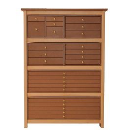Con i suoi numerosi cassetti di piccole dimensioni, la cassettiera ricorda i mobili da merceria, offrendo tutto il fascino senza tempo dei mobili artigianali di una volta.