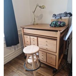 Con il Mobile per macchina da cucire M+ (con due ripiani laterali), abbiamo creato un mobile estremamente pratico che facilita l’uso della macchina da cucire e della serigrafia, oltre a tenere tutti i materiali a portata di mano.
